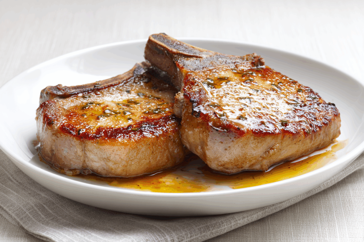 Simmer bourbon, brown sugar, a splash of soy sauce, and a little Dijon mustard until thick enough to coat a spoon. The alcohol cooks off, but the flavor stays. Sear the pork chops, then brush the sauce over them for the last minutes of cooking.