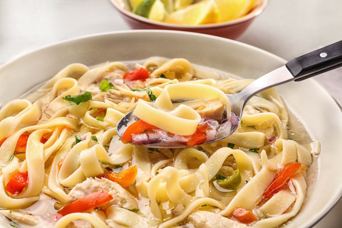 - If you want to freeze the soup, stop before adding the noodles. Cook fresh noodles when you reheat it so the texture stays better.