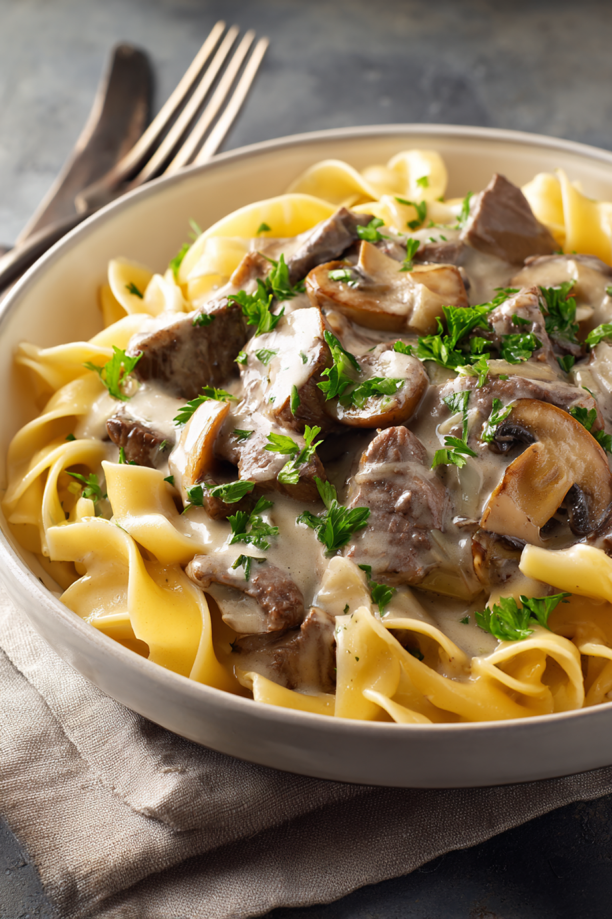 When I want comfort food without a long cooking time, this beef stroganoff recipe is one of my top choices. I make it with sliced beef, buttery sauteed mushrooms and onions, and then finish it with a creamy, rich sauce.