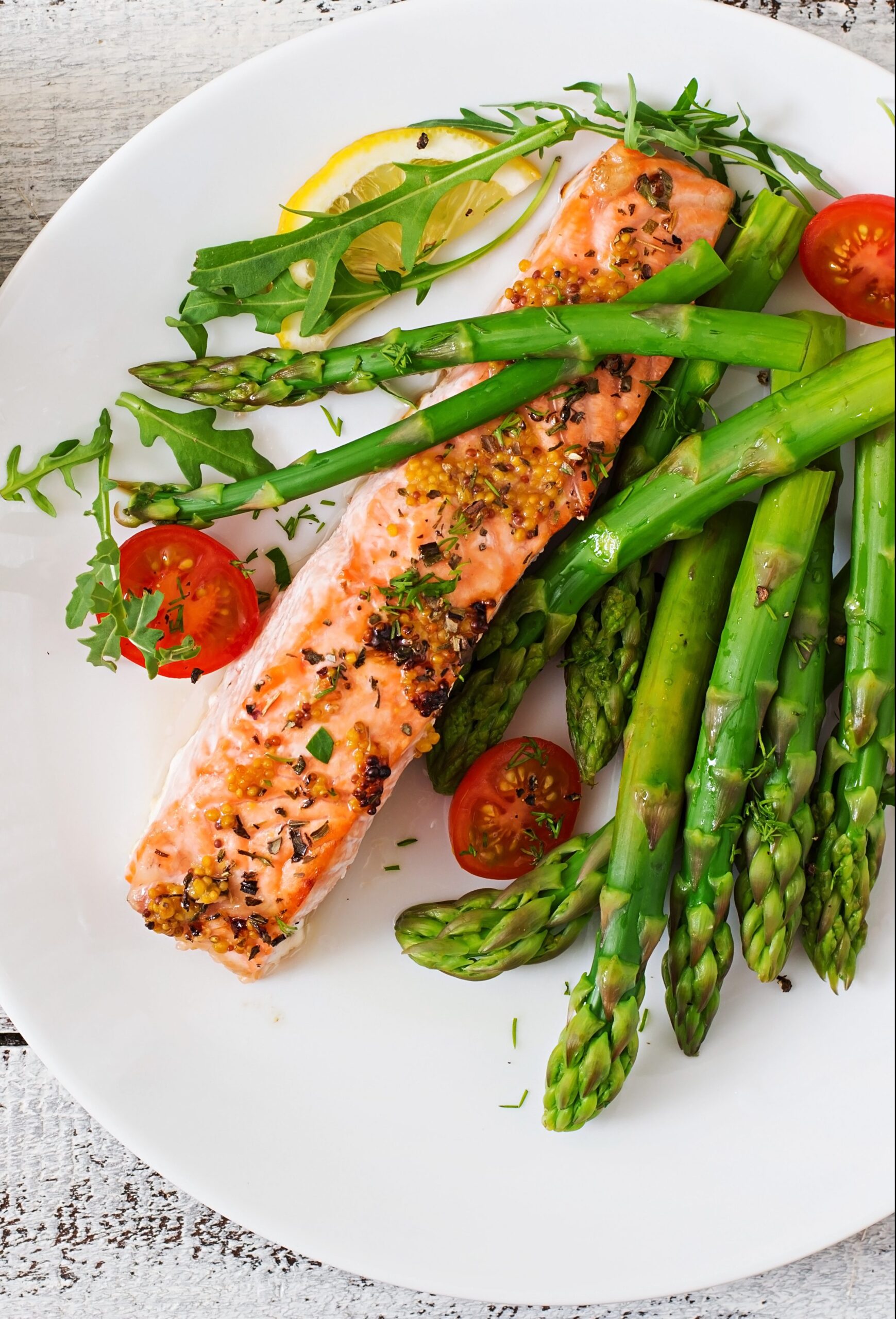 - Transfer salmon to serving plates and arrange asparagus on top of and around salmon. Cover with foil to keep warm.