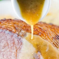 A pineapple brown sugar glaze recipe is the most popular glaze for spiral ham and for good reason. I prefer to make my own ham glaze as I find the glaze packets included with spiral ham are often too intense for my tastes. Plus this homemade glaze for ham glaze is so easy to make and easy to adjust the taste.